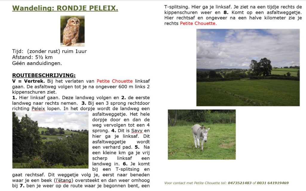 Voor onze gasten had ik wandelingen gemaakt, d.w.z. op de kaart uitgezocht, voorgelopen en op een kaart ingetekend. Ook had ik er een routebeschrijving bij gemaakt.