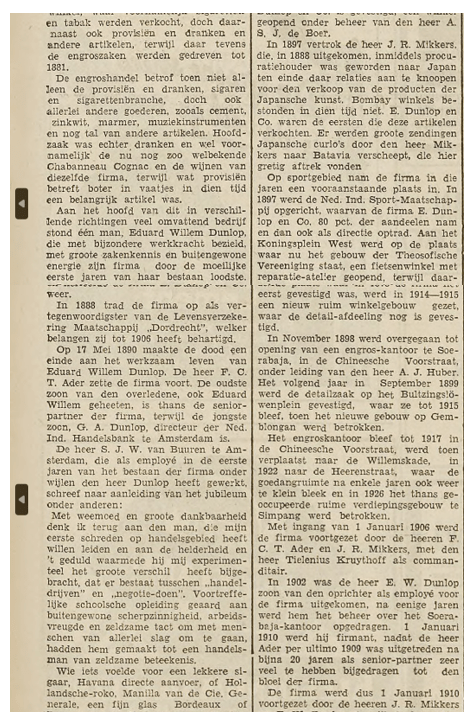 Over die firma is natuurlijk van alles te vertellen en dat ga ik zeker nog doen. In deze bijdrage ga ik het verhaal van de firma vertellen met behulp van de reclames die door de jaren heen in de Indische kranten zijn verschenen. Reclames voor allerlei verschillende producten, want de firma handelde in allerlei zeer diverse producten. Het begon met rookwaar en drank en later kwamen er vele andere verschillende producten bij.