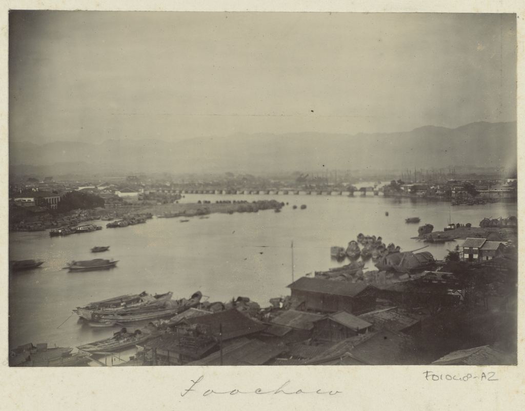 Fuzhou: gezicht over de stad, de brug en de rivier, Hendrik Dunlop (mogelijk), 1890 – 1895