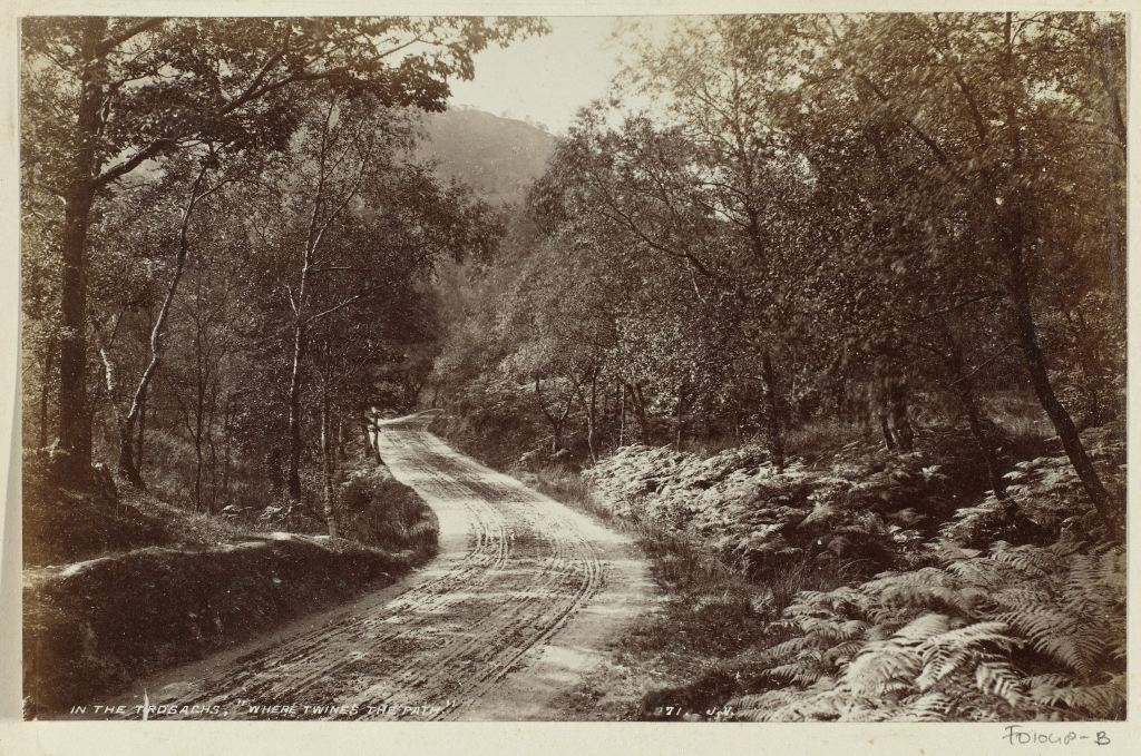 Bospad met karrensporen in Trossachs, James Valentine, ca. 1870 – ca. 1886