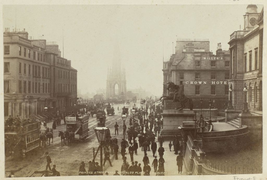 Princes Street in Edinburgh, gezien vanaf Waterloo Place, James Valentine, ca. 1870 – ca. 1886