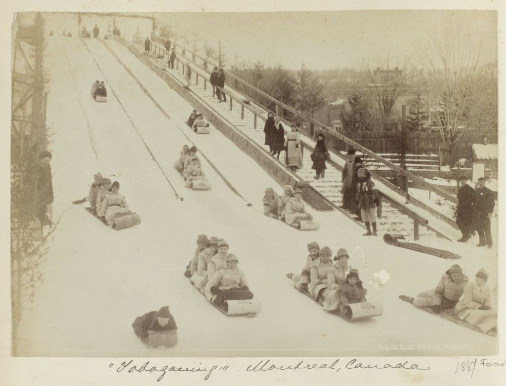Sleeënde kinderen van de Tuque Blue op een heuvel in Montréal (Canada), J.G. Parks, ca. 1880 – ca. 1887