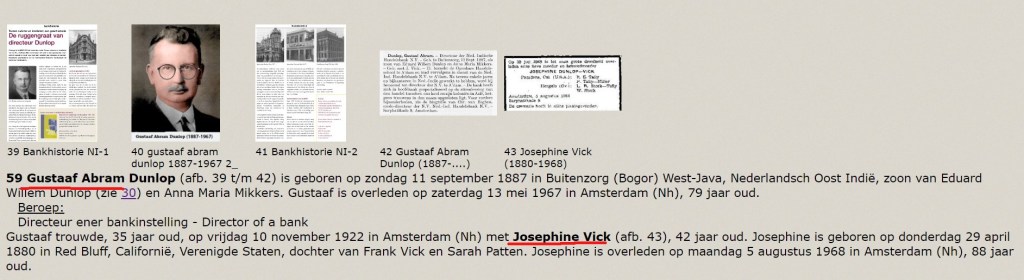 Uit voorgaande blijken dus banden van de van Konijnenburg familie met de Dunlop familie. Deze banden zullen ongetwijfeld geleid hebben tot de opdracht om een portret te laten schilderen van Josephine Dunlop-Vick in 1922. In 1922 trouwde mijn oudoom Bram, broer van mijn grootvader, met Josephine Vick.