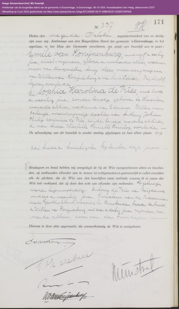 Over de twee huwelijken van Emile van Konijnenburg.